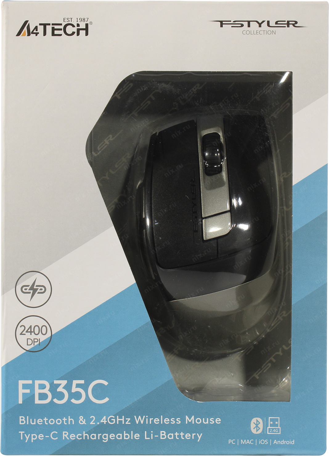 Мышь A4Tech Fstyler FB35C серый/черный оптическая 2000dpi беспров. BT/Radio USB 6but (FB35C SMOKY GREY) FB35C SMOKY GREY