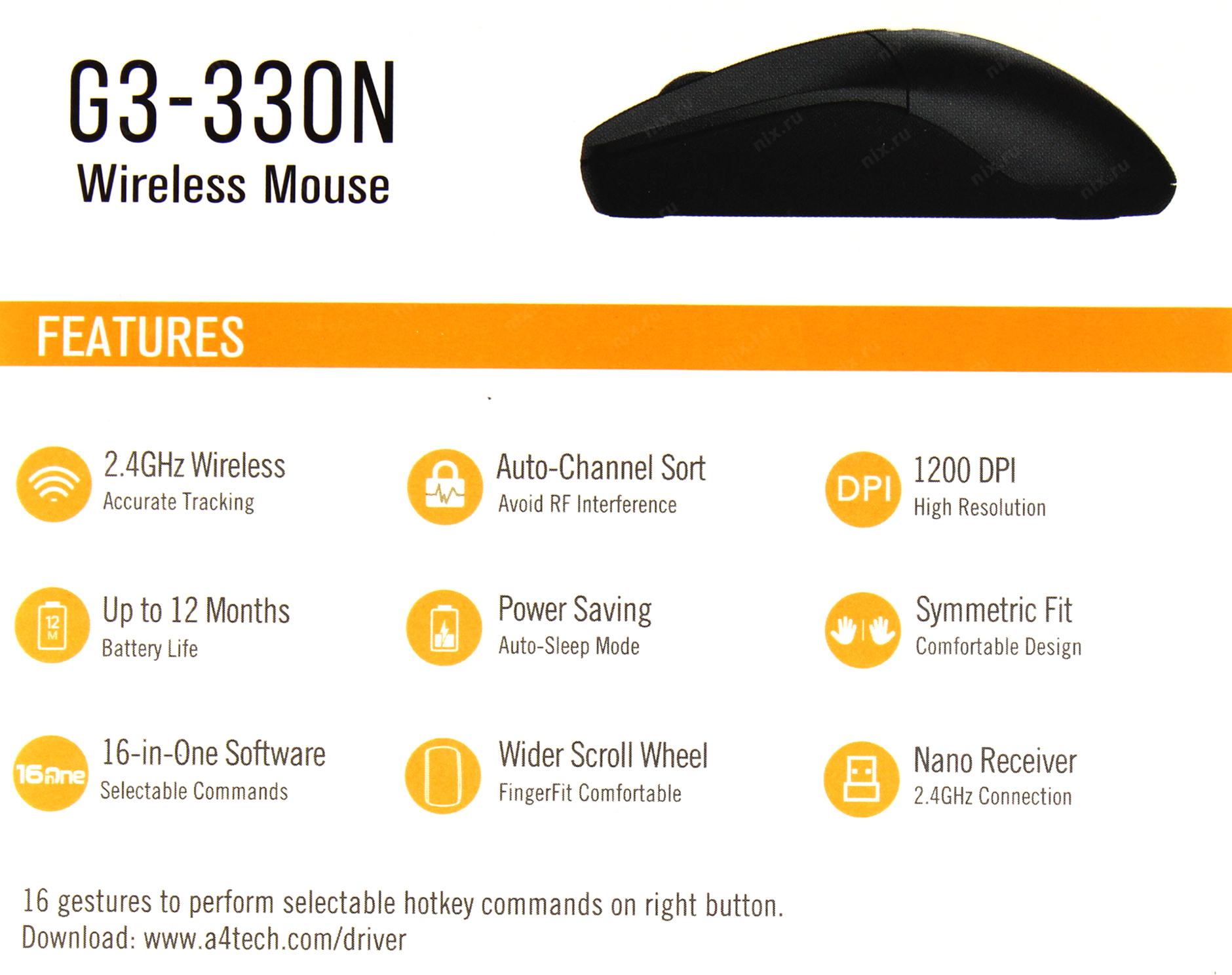 Мышь A4Tech G3-330N черный оптическая (1200dpi) беспроводная USB (3but)