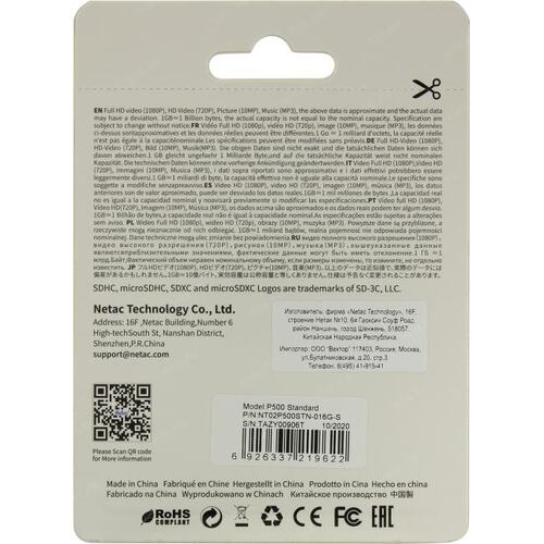 Флеш карта microSDHC 16GB Netac NT02P500STN-016G-S P500
