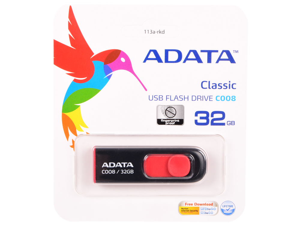 Флеш Диск A-Data 32Gb Classic C008 AC008-32G-RKD USB2.0 красный/черный