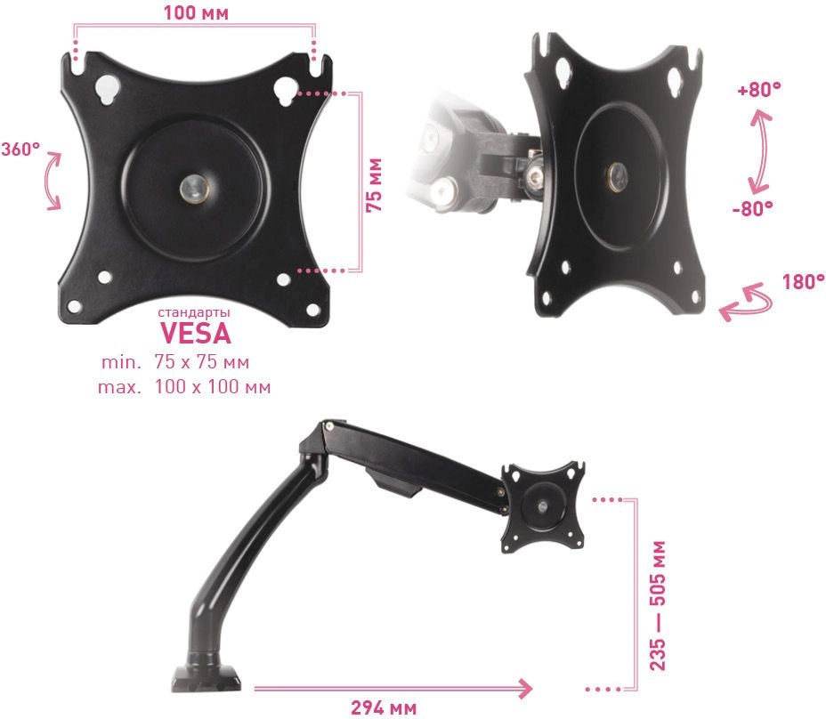 Настольный держатель для эргономичной регулировки положения дисплея с диагональю от 15 до 32 дюймов