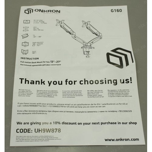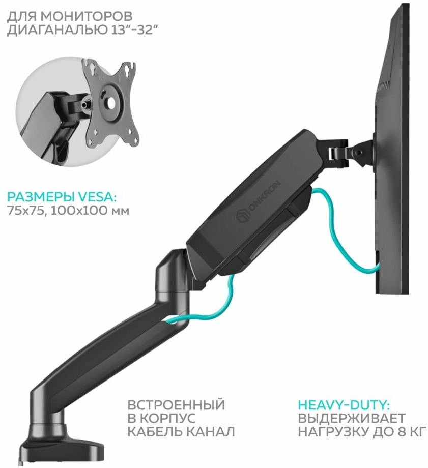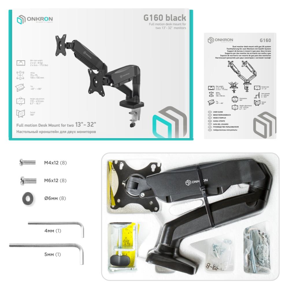 Крепления для мониторов ONKRON G160 чёрный (Для двух экранов с диагональю 13"-32" Допустимая нагрузка: 2 x (2-8 кг) VESA: 75x75, 100x100 мм) [4603726156837]