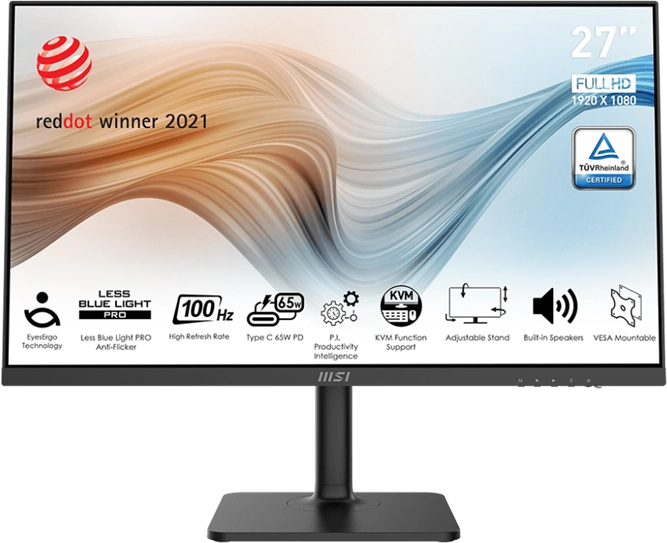 Монитор MicroStar MSI Modern 27" MD272XP черный (IPS 1920x1080 100Hz 4ms 178/178 300cd 8bit(6bit+FRC) HDMI1.4 DisplayPort1.2 USB-C(65W) 2xUSB 2x3W HAS Pivot VESA) [9S6-3PB19H-232]