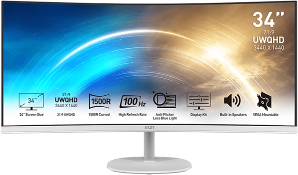 Монитор MicroStar MSI PRO 34" MP341CQW белый (VA Curved 3440x1440 100Hz 4ms 2xHDMI2.0 DisplayPort1.2 2x2W VESA) 9S6-3PB2CT-025]