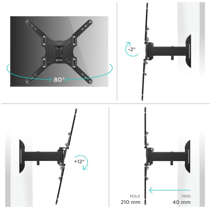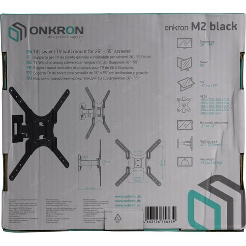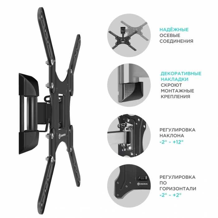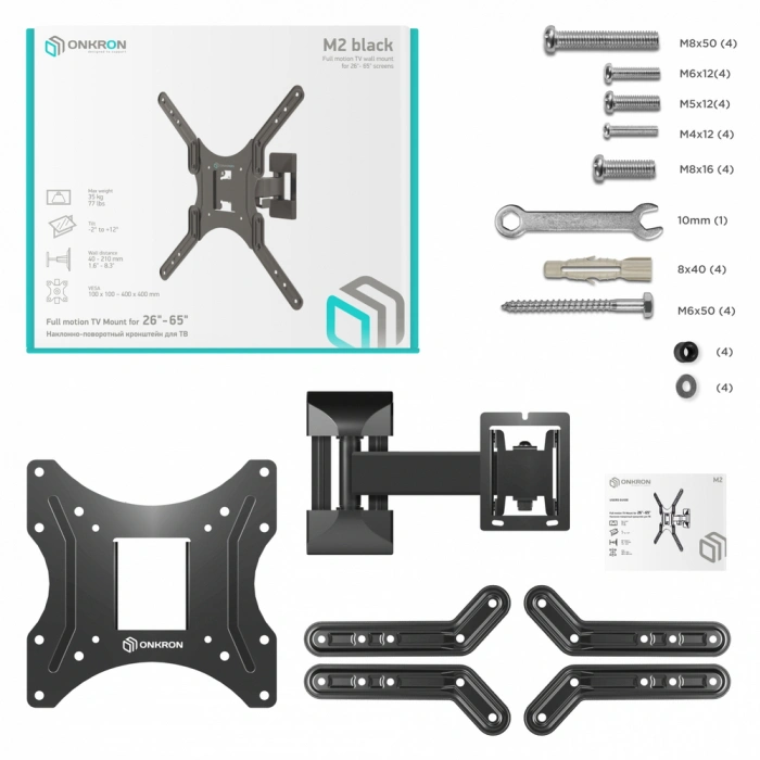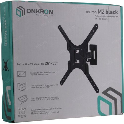 Крепеж ONKRON M2 чёрный Для телевизоров диагональю 26"-55" Максимальная нагрузка: 35 кг VESA: 100x100, 200x100, 200x200, 200x300, 200x400, 300x200, 300x300, 400x200, 400x300, 400x400 мм [4603726156639]
