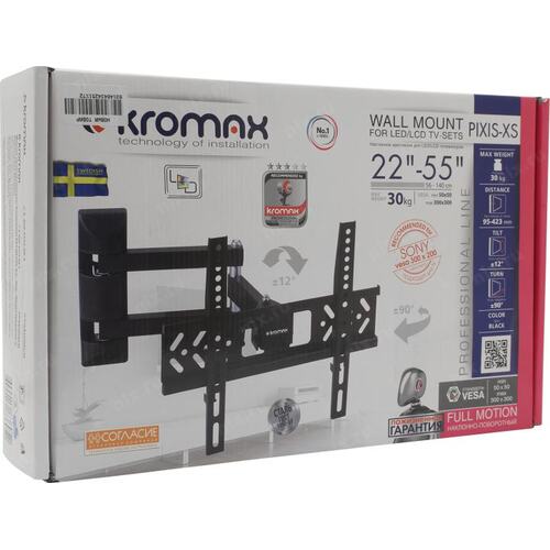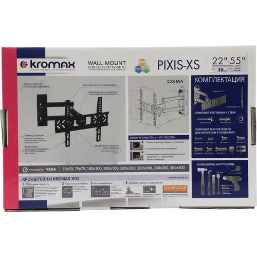 Крепеж Kromax PIXIS-XS Черный Кр. стал. наст. для TV 22"-5", max 30 кг