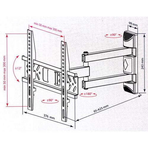 VESA 50 x 50, VESA 75 x 75, VESA 100 x 100, VESA 200 x 100, VESA 200 x 200, VESA 300 x 200, VESA 300 x 300