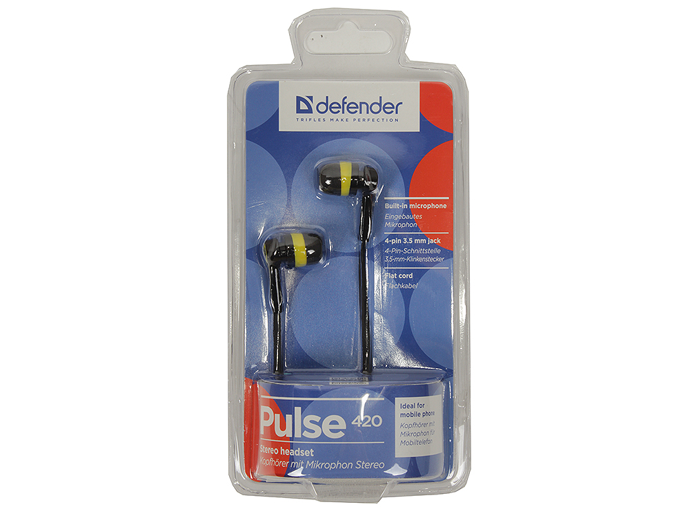 Наушники Defender Pulse 420 черный + желтый, вставки [63421]