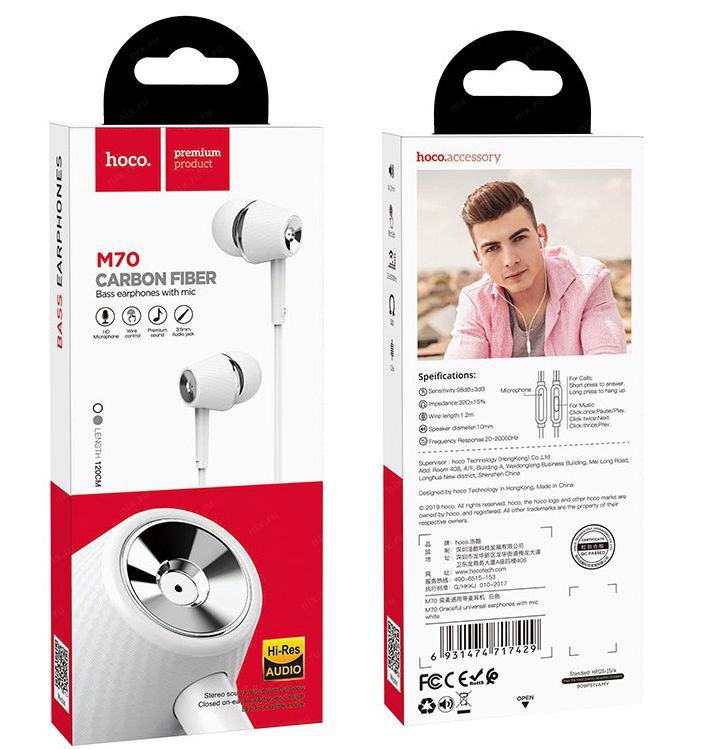 Наушники HOCO HOCO M70/ Наушники + микрофон/ Кнопка ответа/ 1.2м/ 3.5 mm jack/ White [HC-17429]