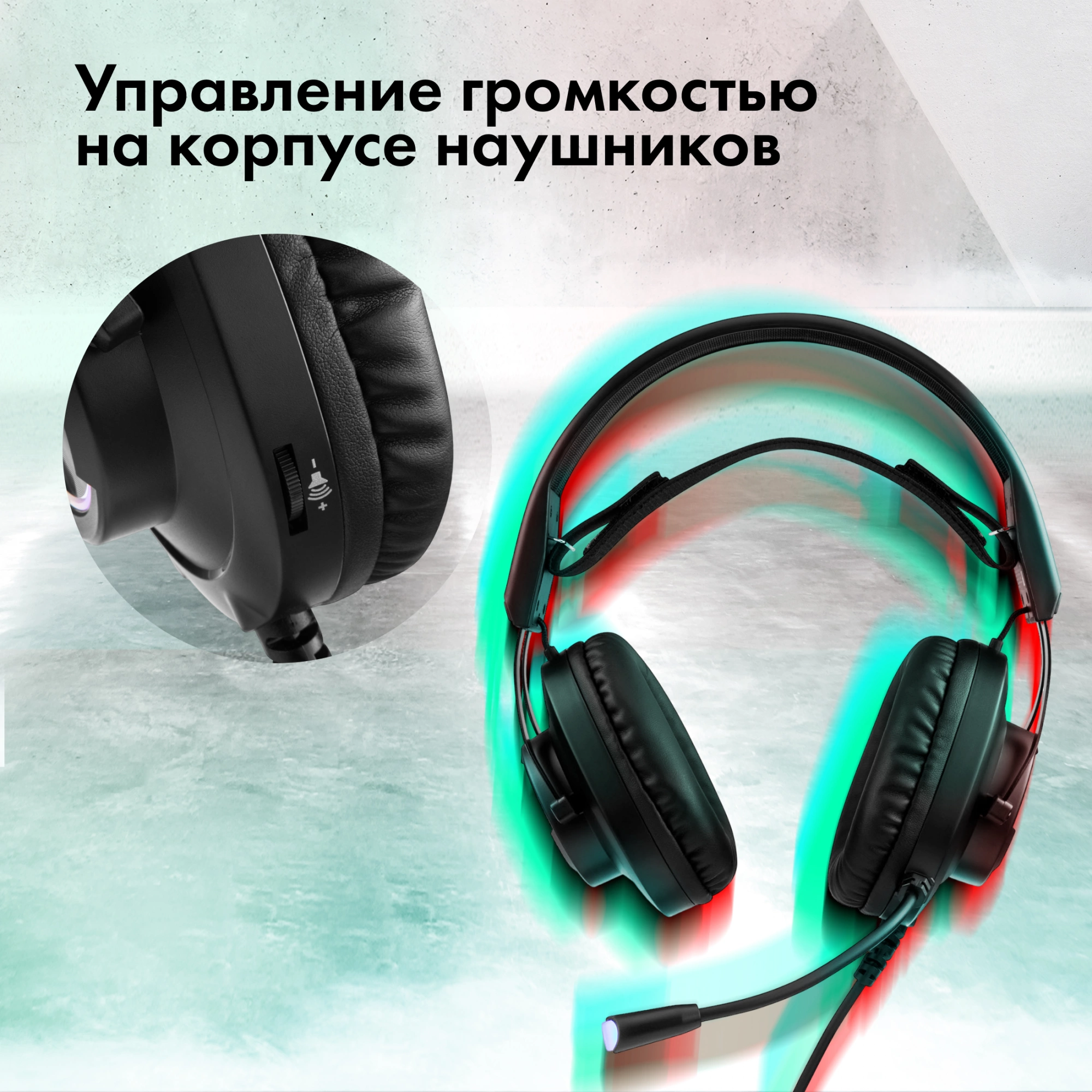 Управление звуком и подсветкой на проводе, Усиленный плетеный кабель, Адаптивное оголовье, Пассивное шумоподавление микрофона