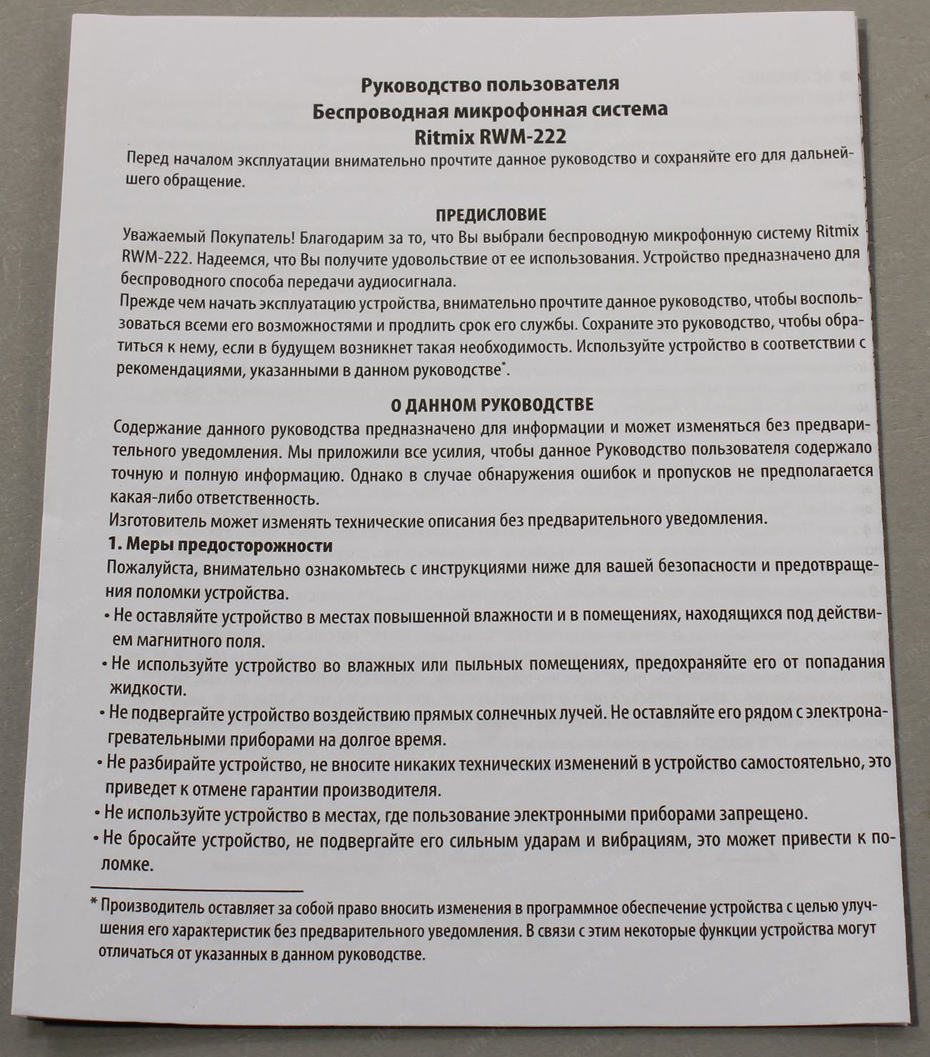 4 батарейки типа AA (по 2 батарейки для каждого микрофона) приобретаются отдельно