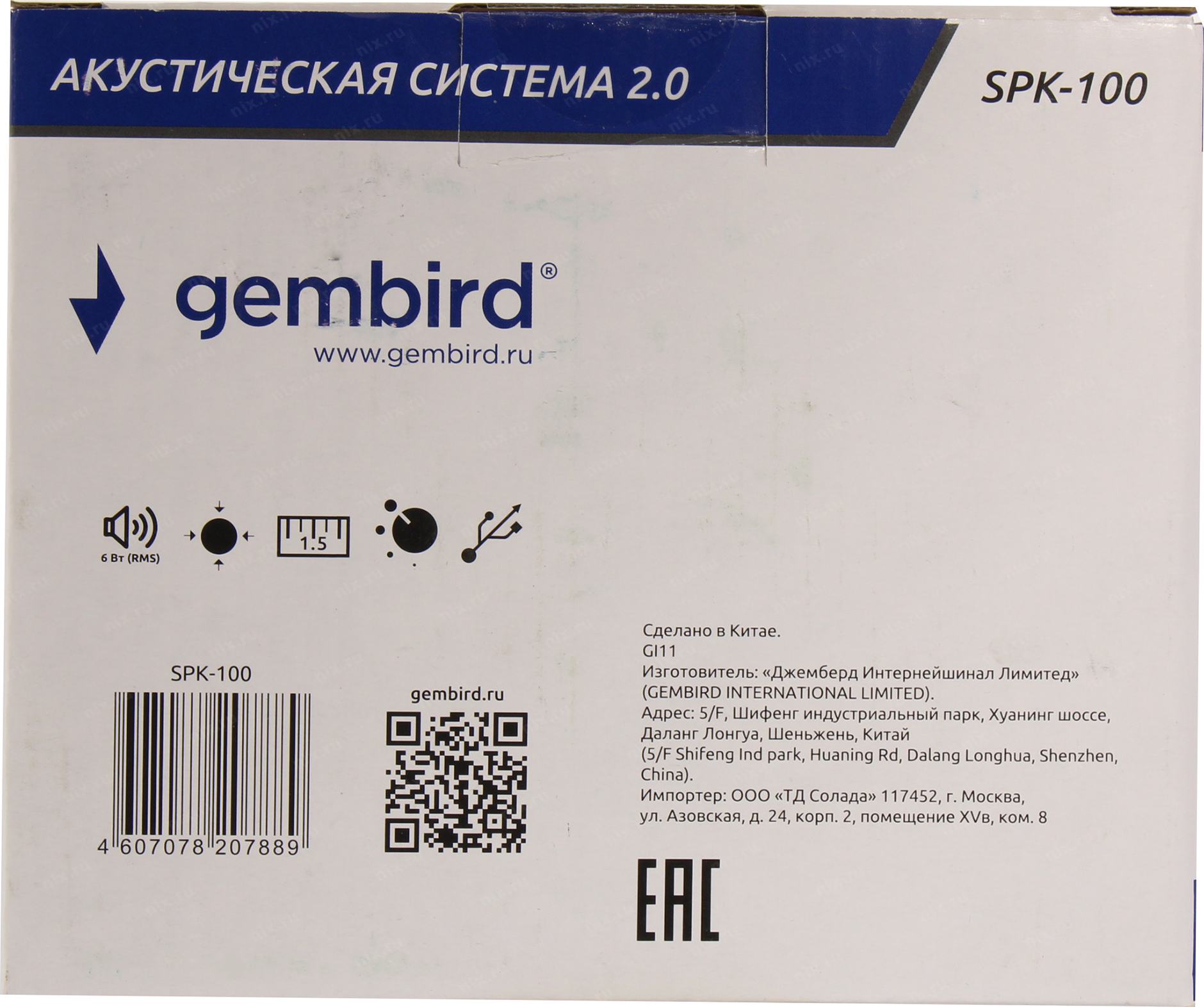 Акустич. система 2.0 Gembird SPK-100, черный, 6 Вт, рег. громкости, USB-питание