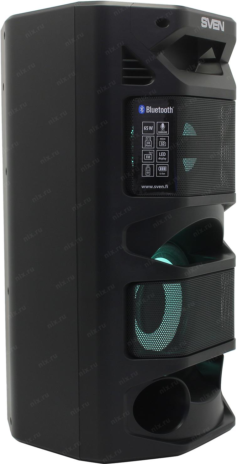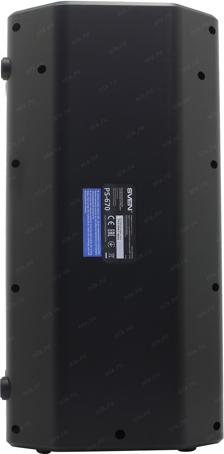 Портативная акустика 2.0 Sven PS-670 SV-020170 черная, 2x32.5 Вт (RMS), BT, FM, USB, microSD, LED-дисплей, пульт