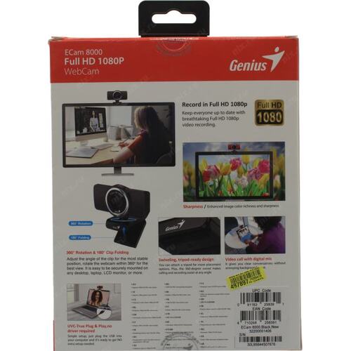 WеЬ-камера Genius ECam 8000 Black (1080p Full HD, вращается на 360°, универсальное крепление, микрофон, USB) [32200001406]