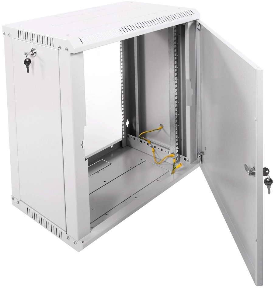 Настенный разборный шкаф; предназначен для размещения активного и пассивного телекоммуникационного оборудования. Удобен для организации сетей в зданиях, где возможны затруднения в доставке и хранении неразборных шкафов.
