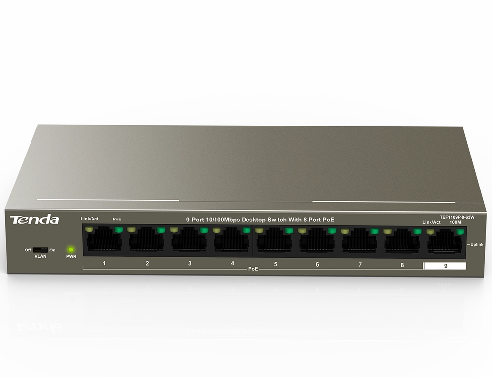 Коммутатор 9PORT 10/100M POE TEF1109P-8-63W TENDA
