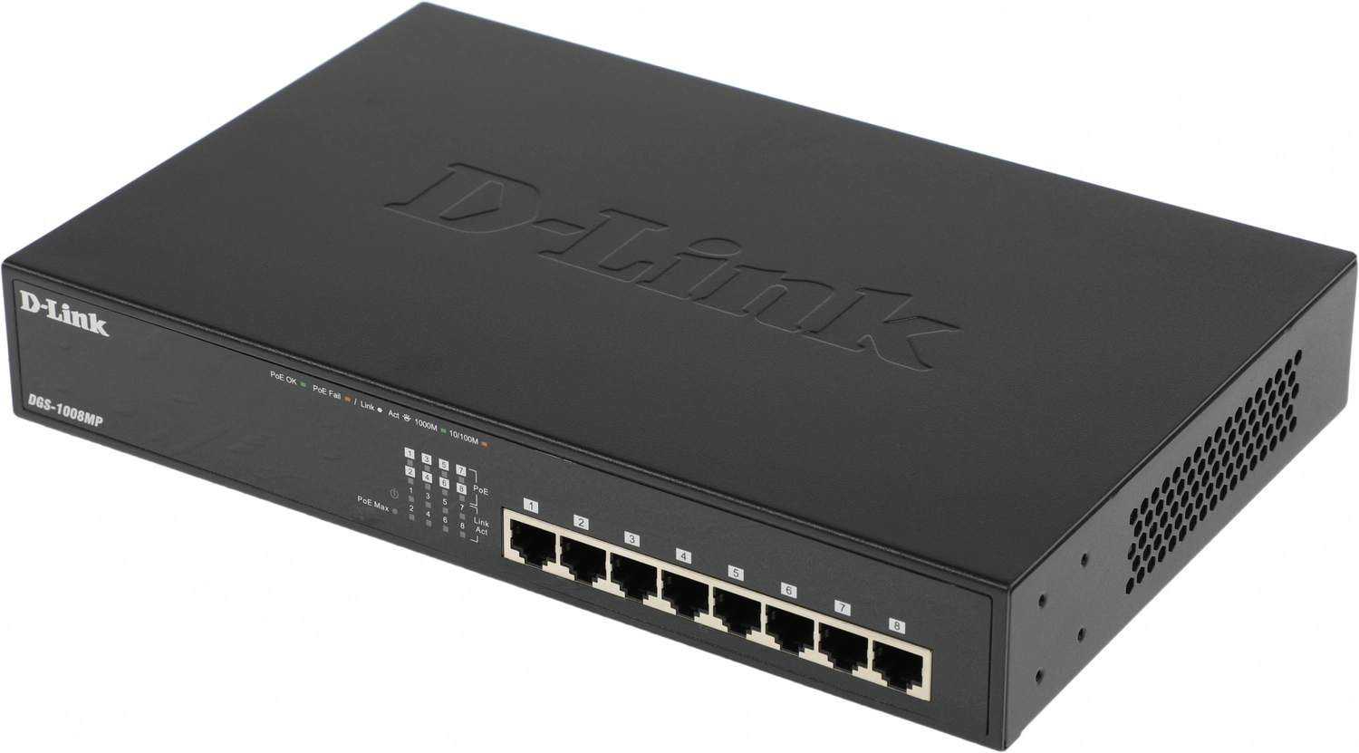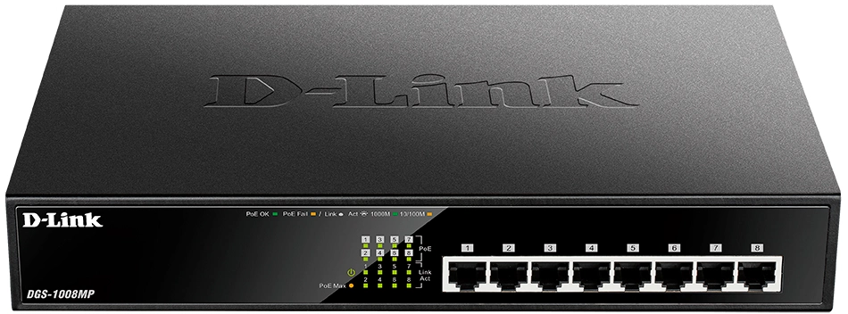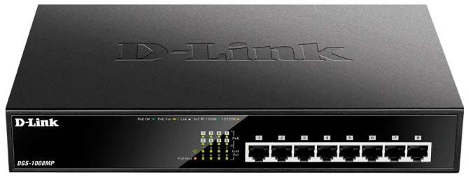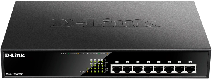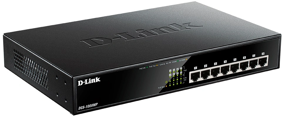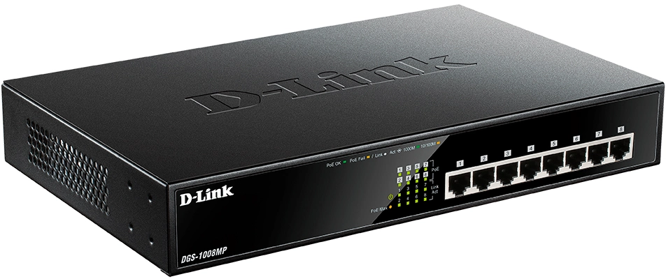 Сетевое оборудование D-Link DGS-1008MP/B1A Неуправляемый коммутатор с 8 портами 10/100/1000Base-T с поддержкой PoE 802.3af/at (PoE-бюджет 125 Вт)