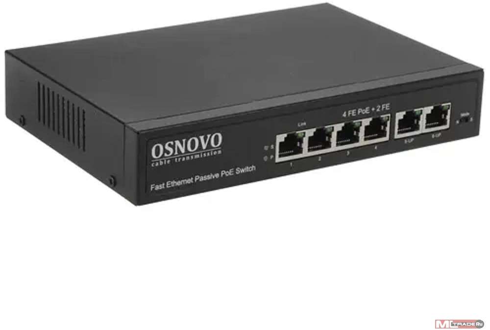 Коммутатор Osnovo SW-20600/A(80W) (L2) 6x100Мбит/с 80W неуправляемый