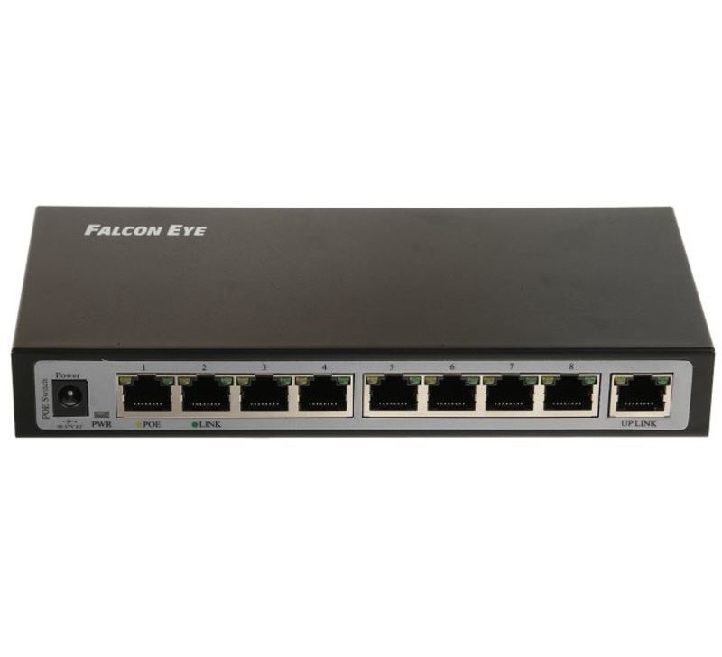 Цифровые камеры Falcon Eye FE-108E-POE Коммутатор 9 портов 10/100 Мбит/с (IEEE802.3u 100BaseTX) из них 8 c поддержкой PoE (IEEE802.3af) до 15,4Вт на порт (HI POE), Сумма