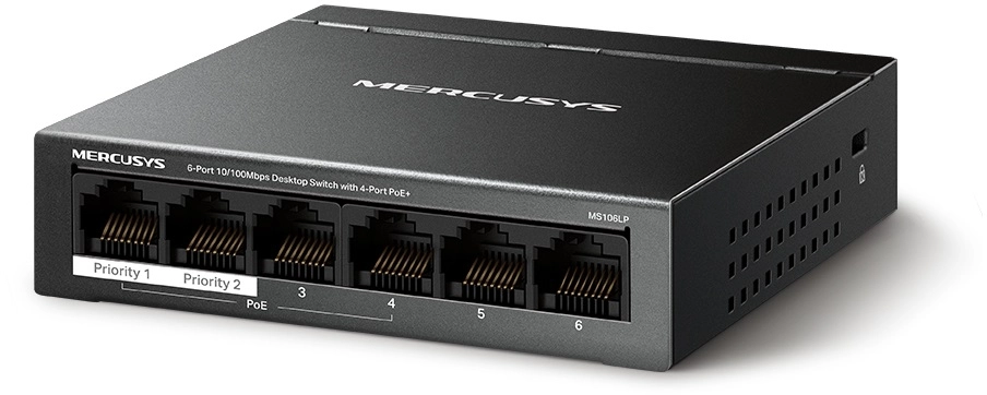 Коммутатор Mercusys MS106LP (L2) 6x100Мбит/с 4PoE+ 40W неуправляемый