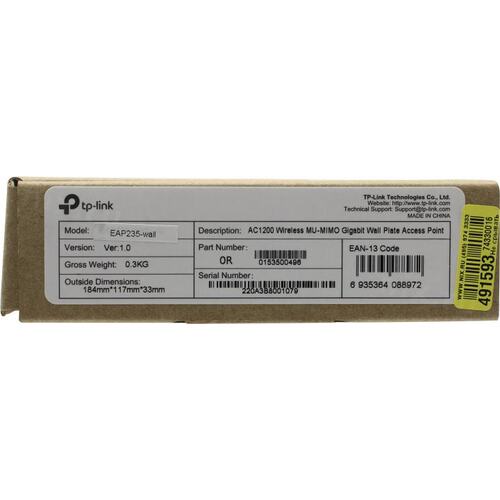 Точка доступа TP-Link EAP235-Wall AC1200 10/100/1000BASE-TX белый