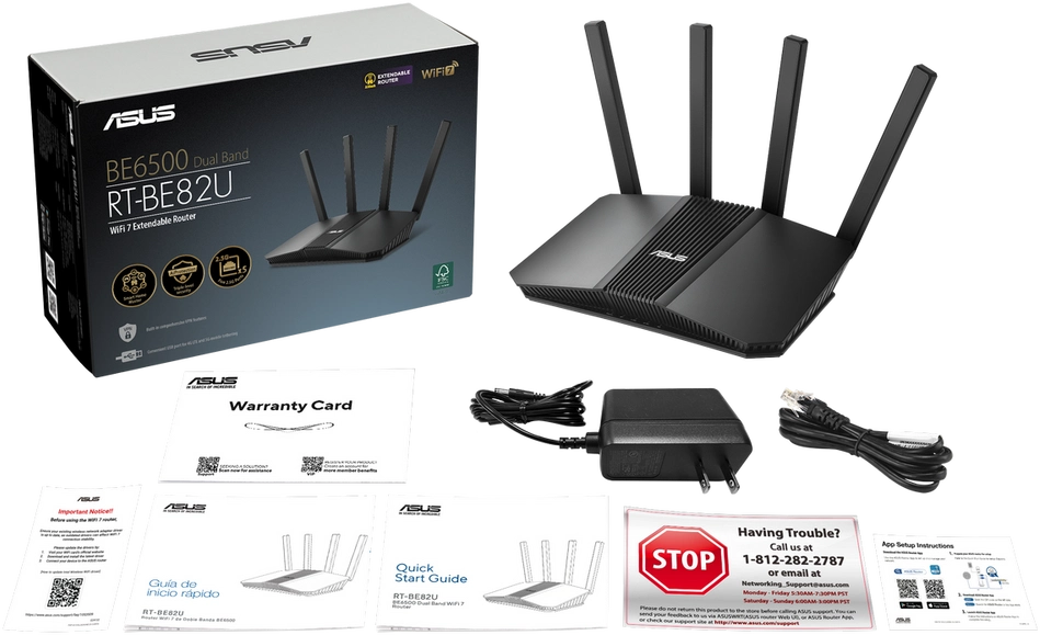 Сетевое оборудование ASUS RT-BE82U Беспроводной двухдиапазонный маршрутизатор BE6500, USB 3.1, Wi-Fi 7 (be)