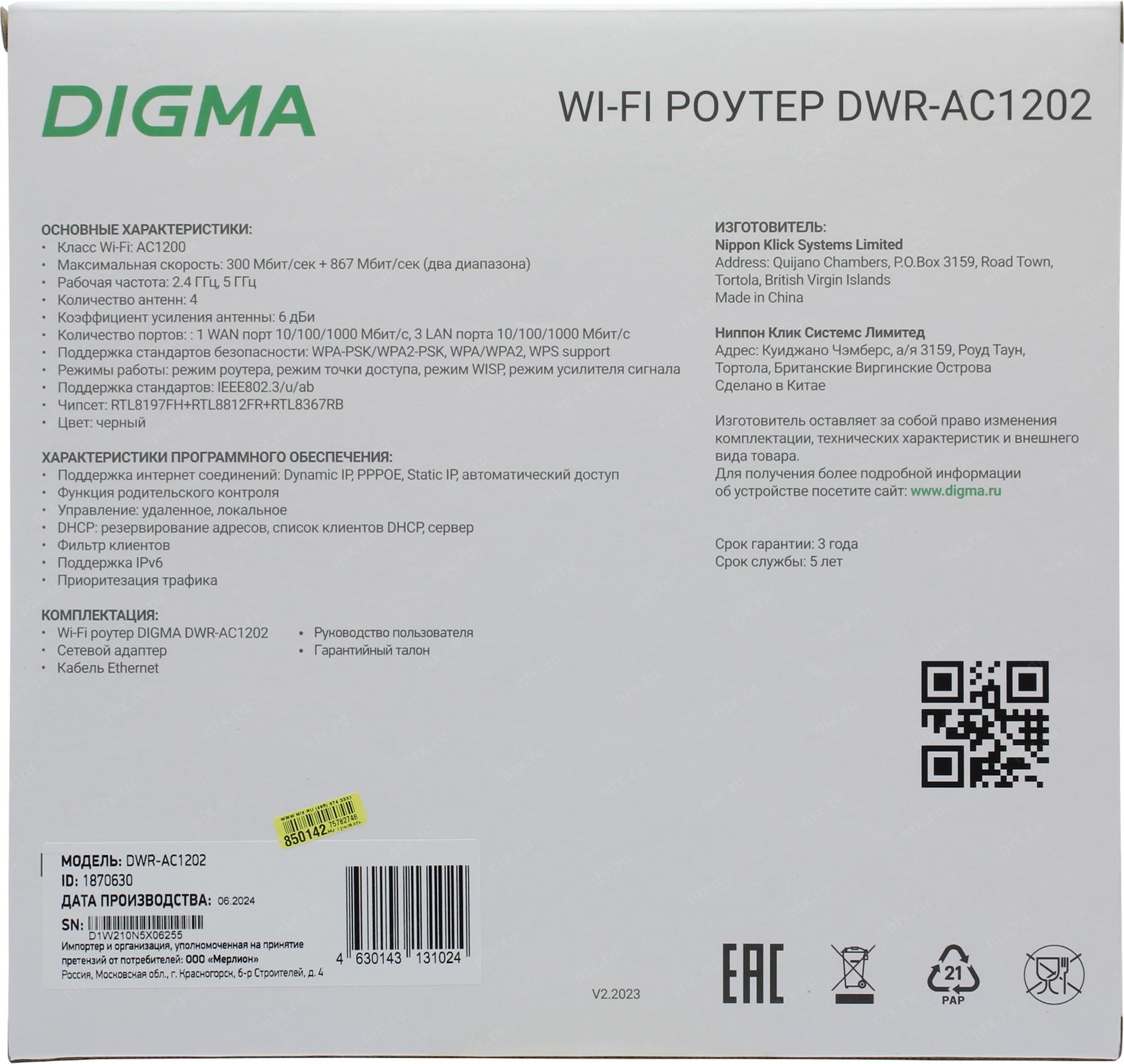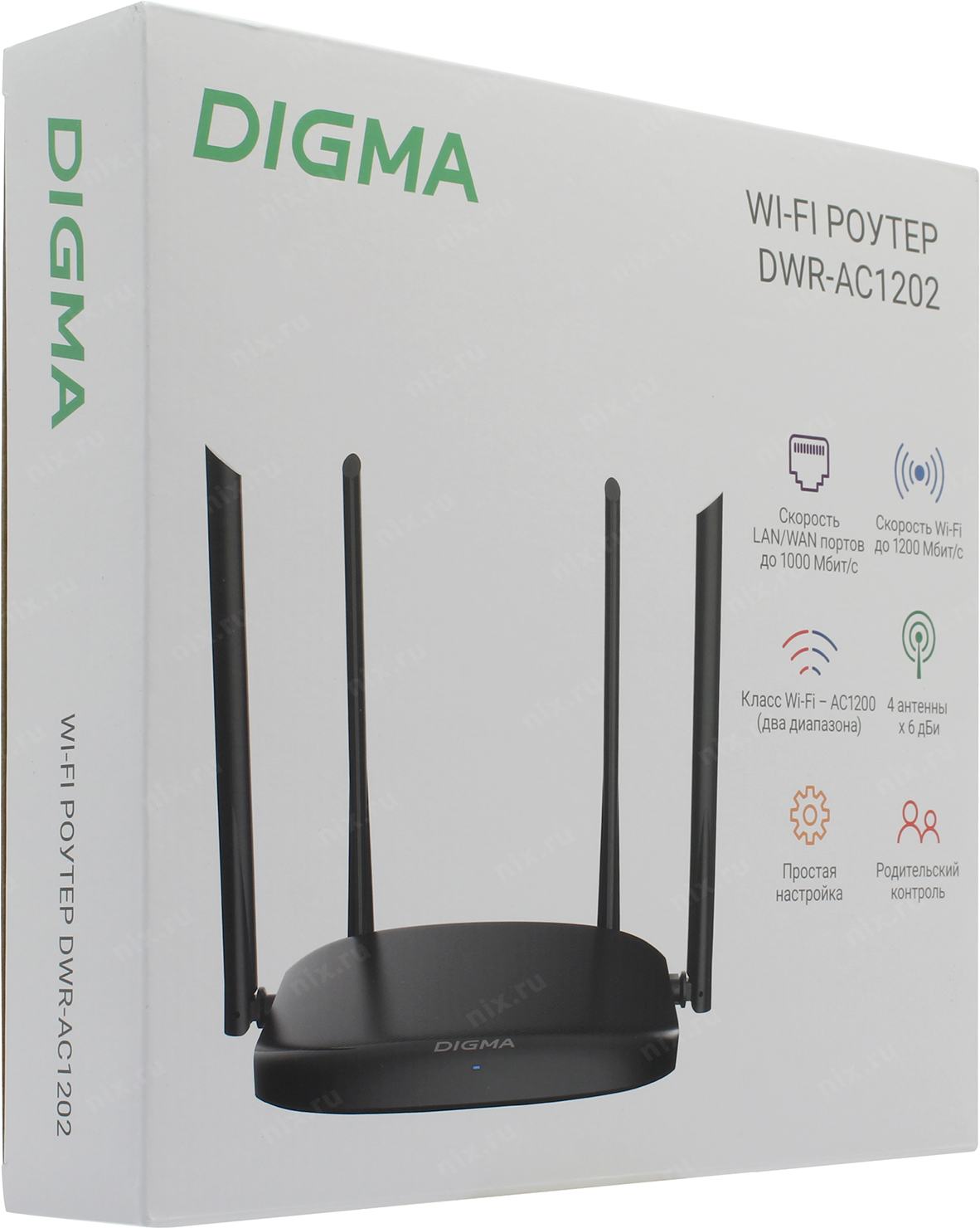 Роутер беспроводной Digma DWR-AC1202 AC1200 10/100/1000BASE-TX черный