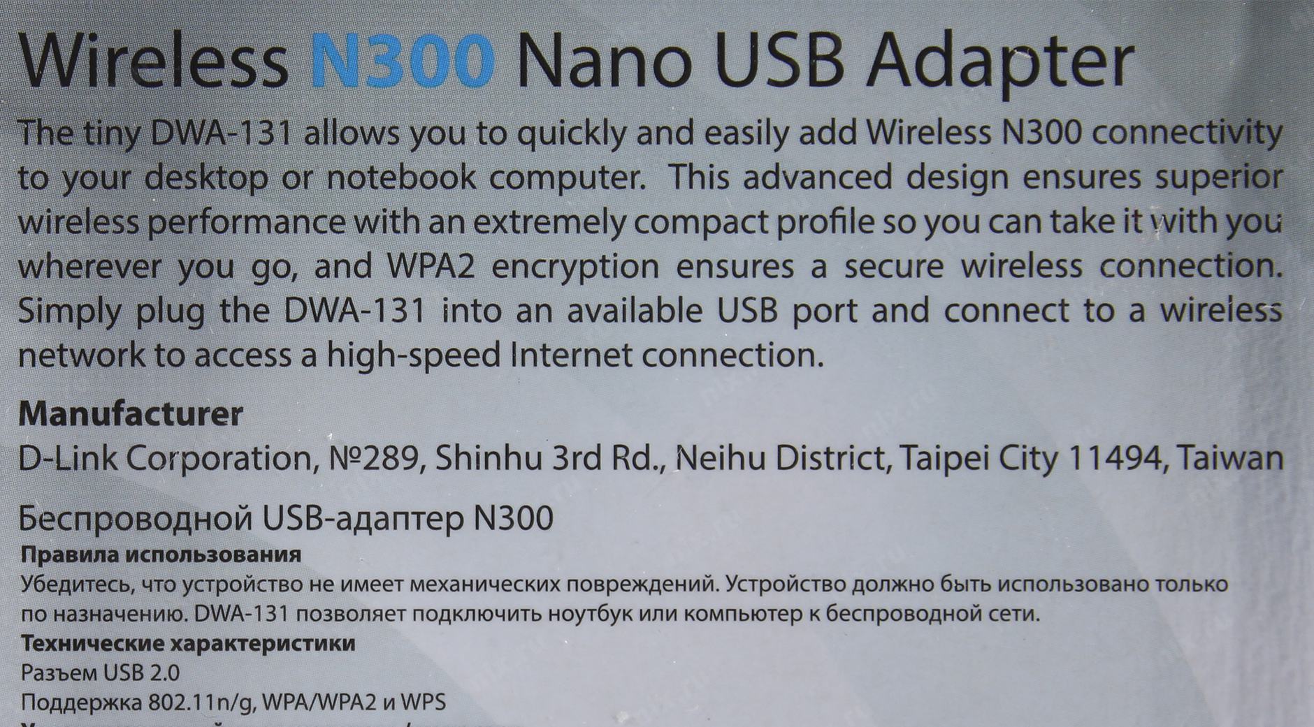 Сетевое оборудование D-Link DWA-131/F1A Беспроводной USB-адаптер N300