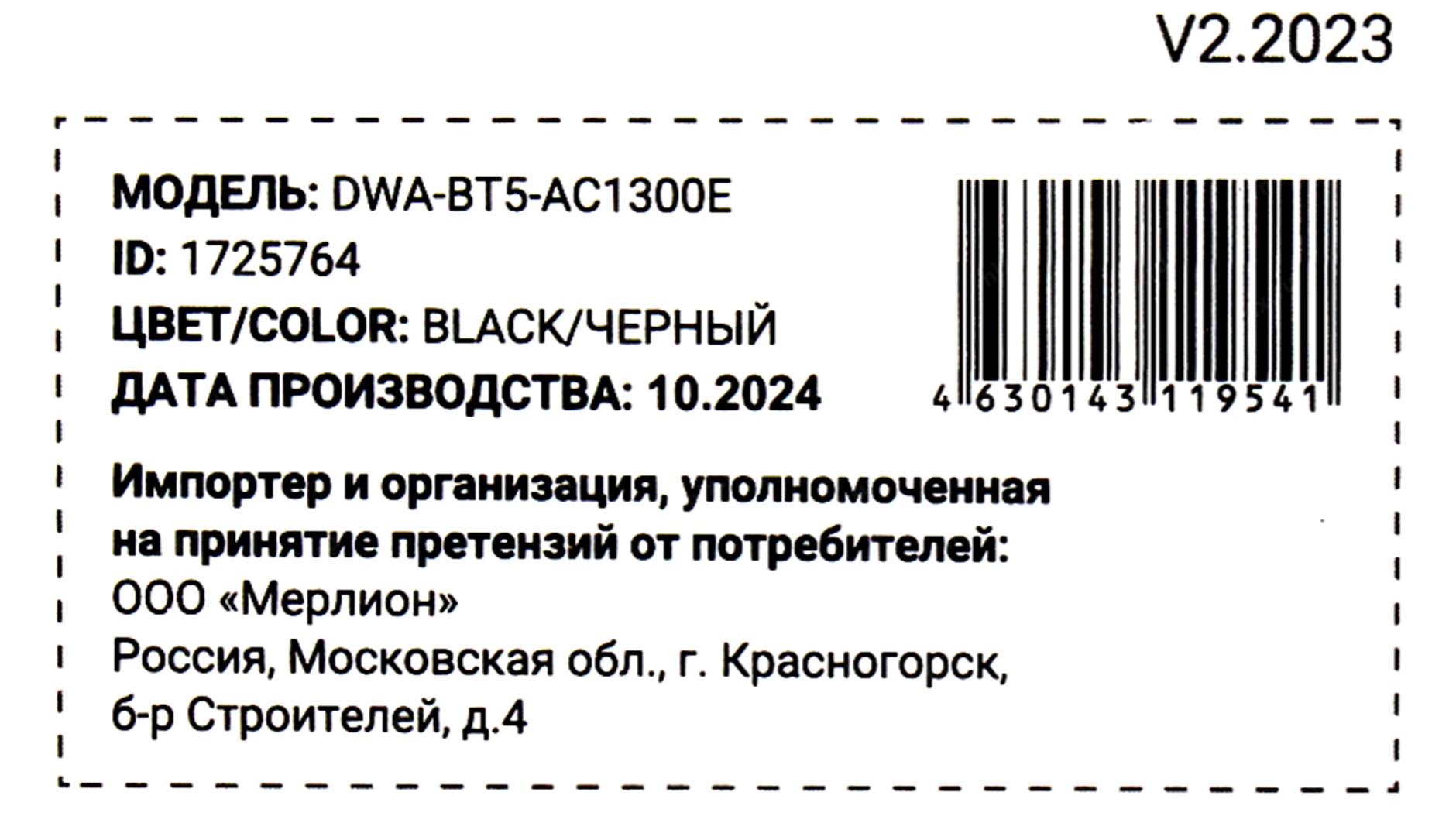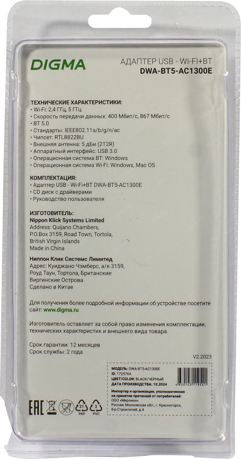 Сетевой адаптер Wi-Fi + Bluetooth Digma DWA-BT5-AC1300E AC1300 USB 3.0 (ант.внеш.съем) 1ант.
