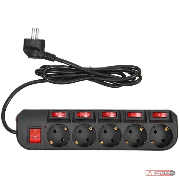 Сетевой фильтр Buro 500SH-1.8-SW-B 1.8м (5 розеток) черный (коробка)