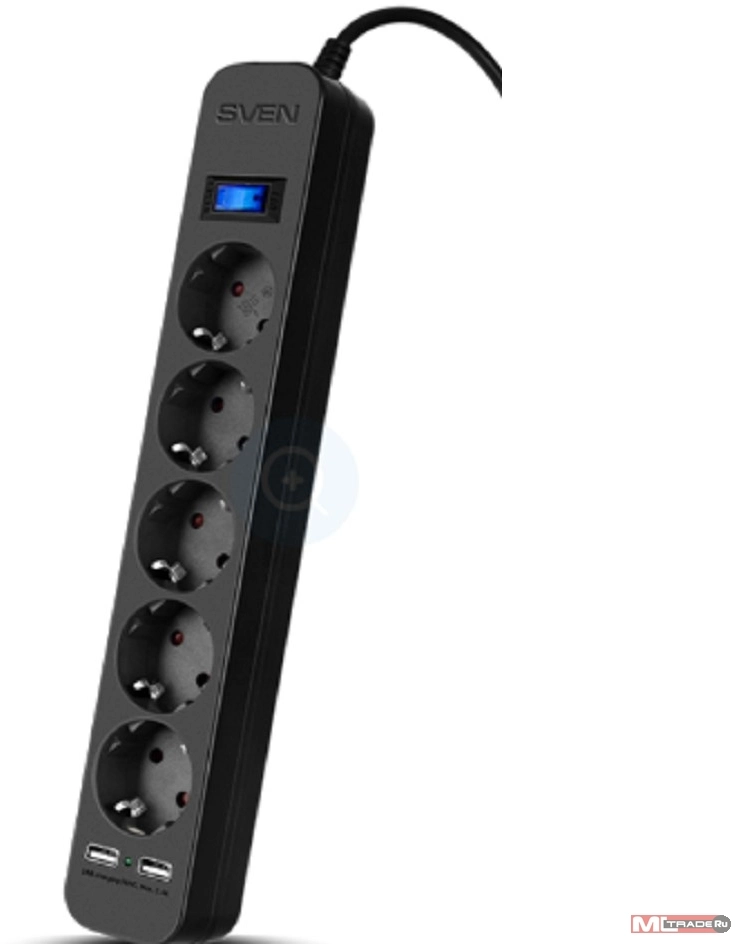 Сетевой фильтр SVEN SF-05LU Black <3м> (5 розеток + 2 USB)