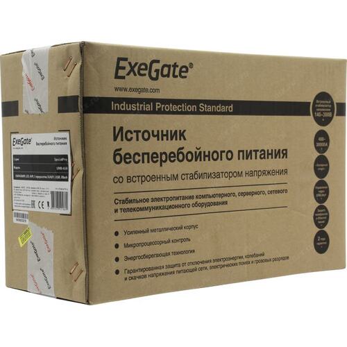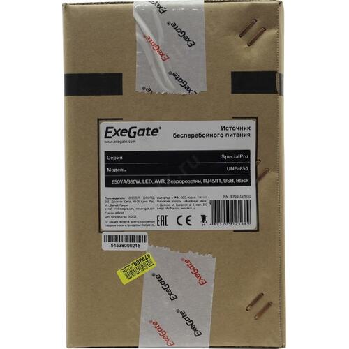 ИБП Exegate EP285597RUS ИБП ExeGate SpecialPro UNB-650.LED.AVR.EURO.RJ.USB <650VA/360W, LED, AVR, 2 евророзетки, RJ45/11, USB, Black>