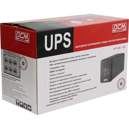 ИБП серии SMART KING PRO+ относятся к напольным линейно-интерактивным устройствам с чистой синусоидой на выходе и имеют сокращенную аббревиатуру SPT. Модели этой серии обычно применяются для защиты рабочих станций, серверов и другого оборудования, критичного к форме питающего напряжения от основных неполадок с электропитанием. SPT-700, представитель серии SMART KING PRO+, обладает достаточным количеством преимуществ: большое число выходных розеток (3 с резервным питанием, 2 только с подавлением помех), USB порт и встроенный стабилизатор напряжения (AVR), поддерживающий выходное напряжение в пределах нормы, не используя ресурс аккумуляторов при колебании напряжения электросети.