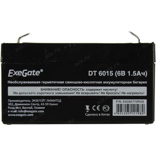 Батареи Exegate EX285770RUS Аккумуляторная батарея DT 6015 (6V 1.5Ah, клеммы F1)