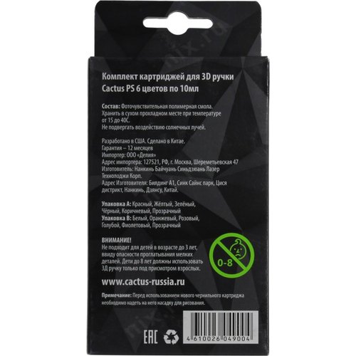 Пластик для ручки 3D Cactus CS-3D-UVPS-B УФ-полимер 6цв.