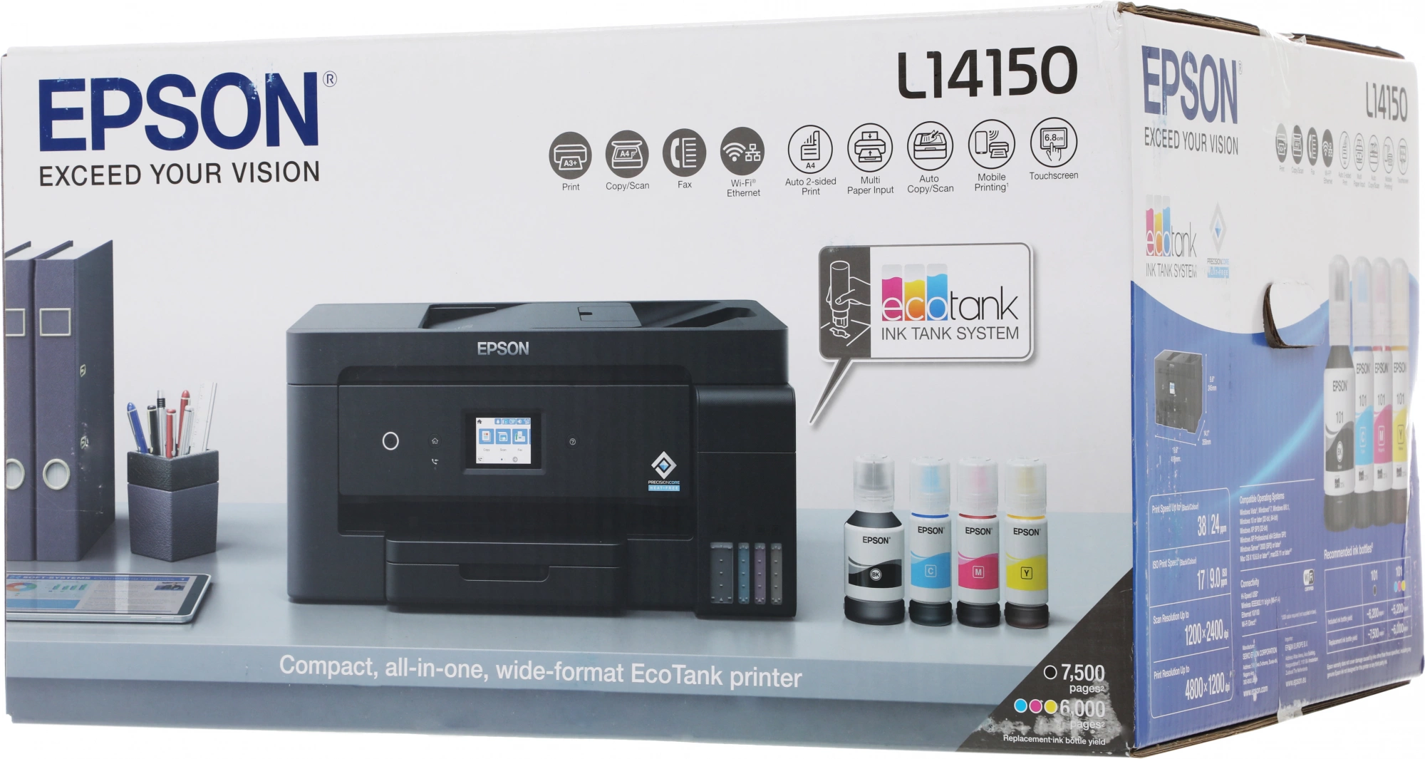 Принтер/МФУ Epson L14150 (C11CH96404/C11CH96505/C11CH96403/C11CH96502/C11CH96507) (A3, ADF, duplex, 35 стр./мин., Ethernet, Wi-Fi )