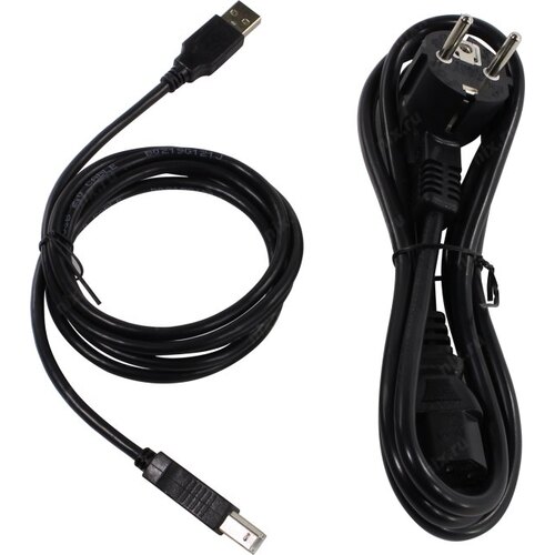 Диск с ПО, кабель USB, кабель питания, пробный картридж