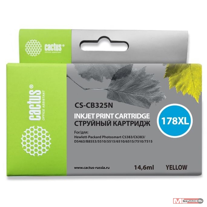 Картридж струйный Cactus CS-CB325N(CS-CB325) №178XL желтый (14.6мл) для HP PS B8553/C5383/C6383/D5463 с чипом