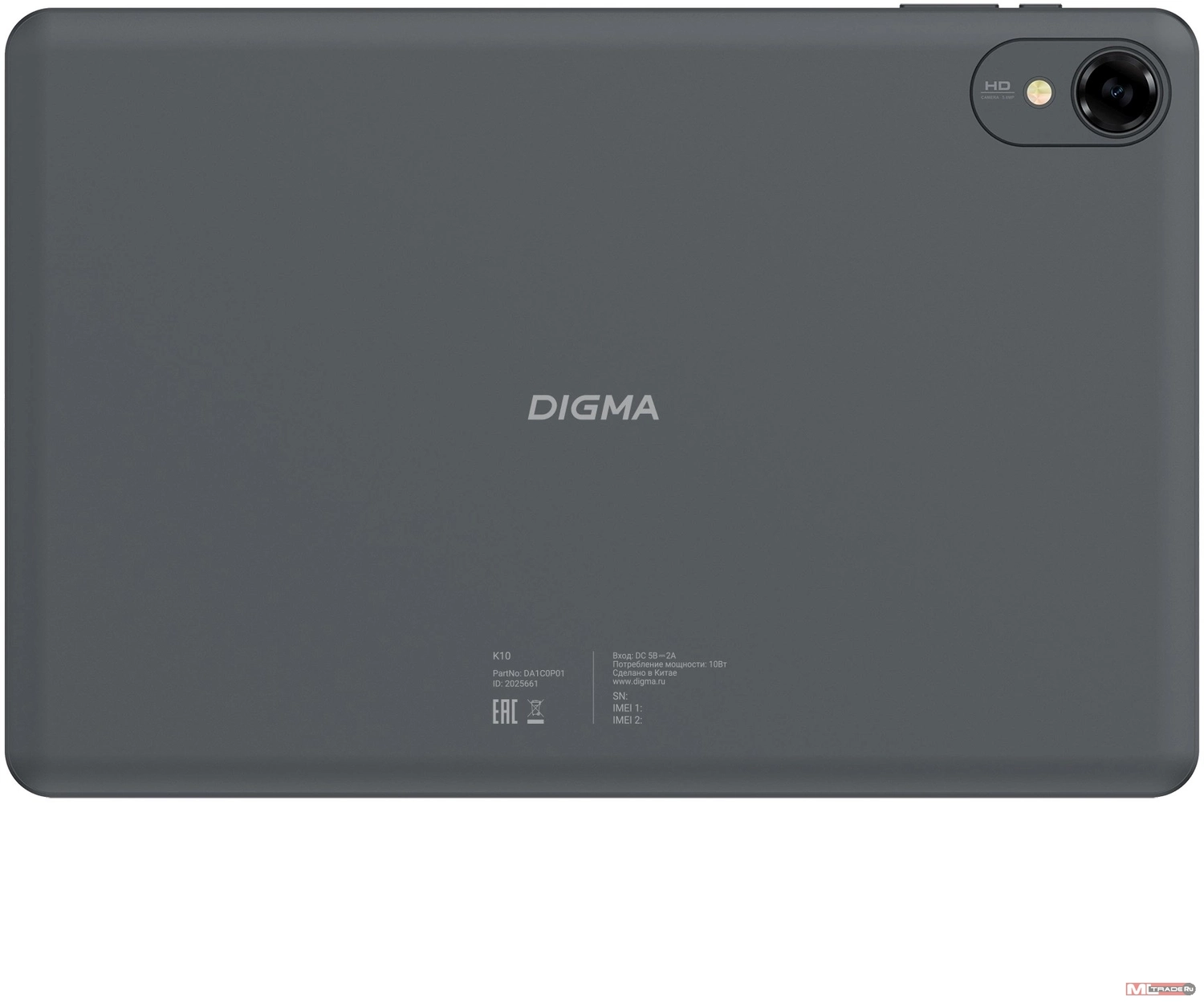 Планшет Digma K10 T606 (1.6) 8C RAM4Gb ROM64Gb 10.1" IPS 1280x800 4G Android 14 серый 5Mpix 2Mpix BT WiFi microSD 1Tb 5000mAh 225hrs DA1C0P01
