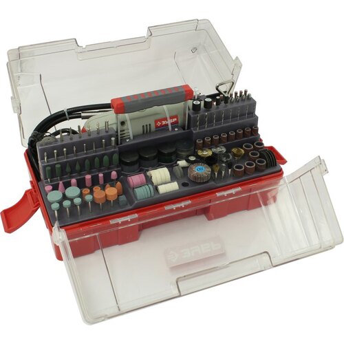 Гравер, или, как их еще называют, дремель (Dremel) ЗУБР - это надежный инструмент с мощным двигателем, способный выполнить широкий круг задач (резка, полировка, гравирование, шлифование). Помимо набора насадок, данная модель имеет в комплекте гибкий вал, штатив, кронштейн для штатива. Набор мини-насадок позволяет в домашних условиях осуществлять тонкую чистовую высокоточную обработку различных материалов без применения дорогостоящего профессионального оборудования. Применяется для полировальных, шлифовальных, заточных и отрезных работ по дереву, металлу, пластику и многим другим материалам.;;В комплекте богатый набор насадок и приспособлений (238 предметов)