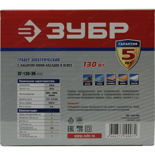 Гравер Зубр ЗГ-130ЭК H242 130Вт насадок:242