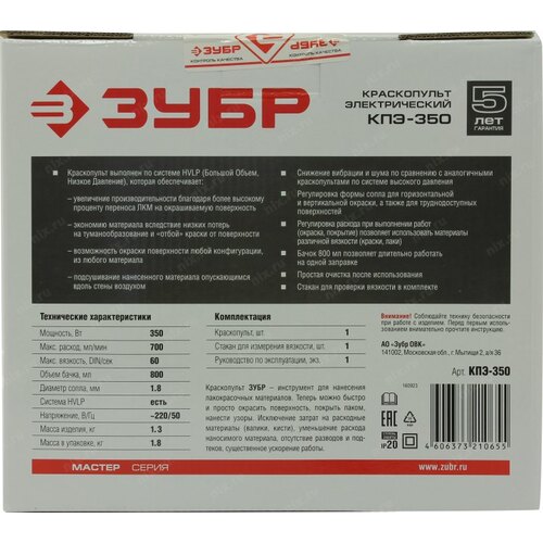 Краскопульт Зубр КПЭ-350 350Вт бак:800мл 700мл/мин